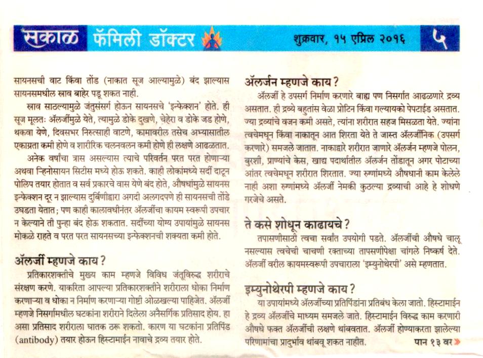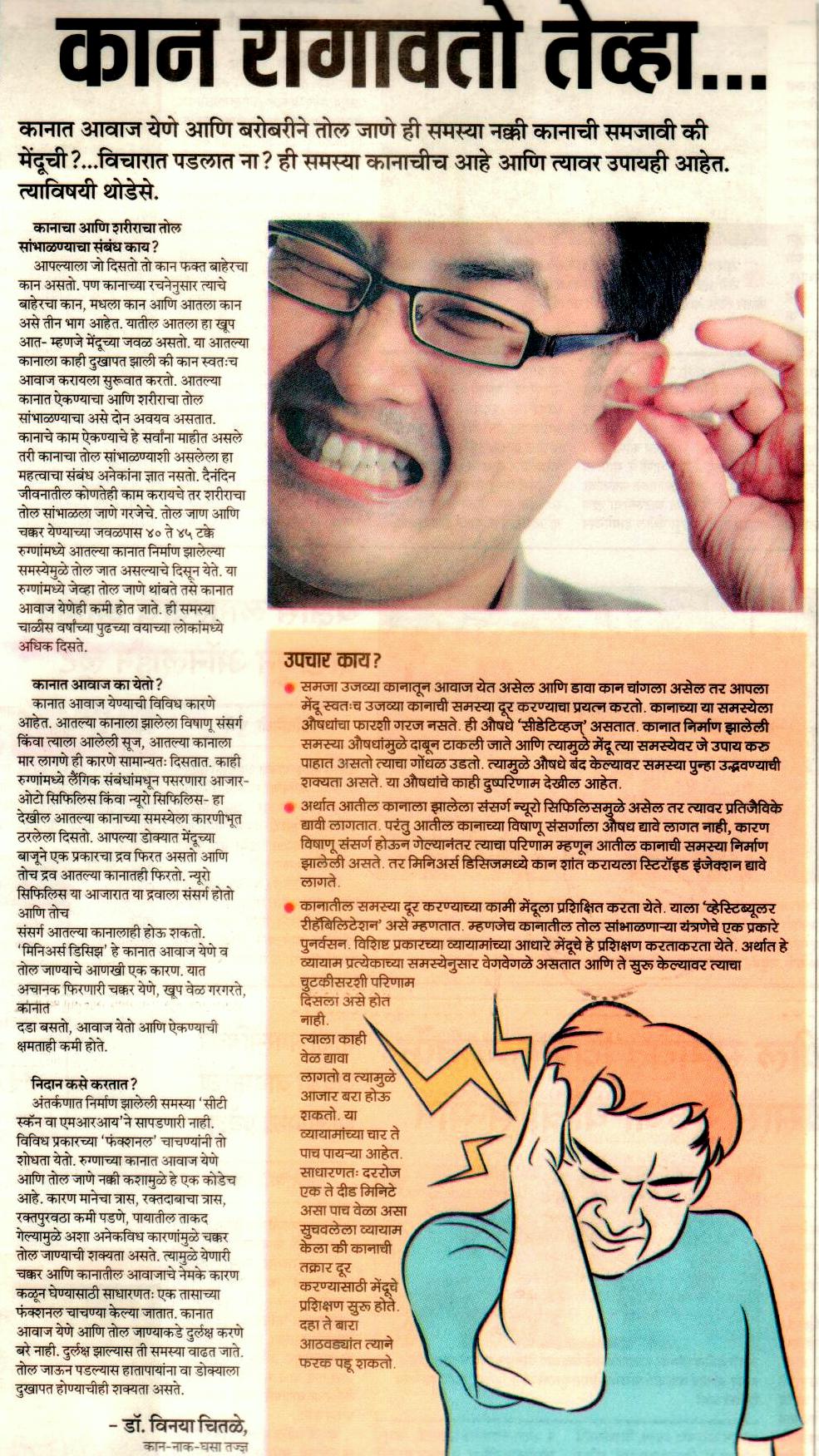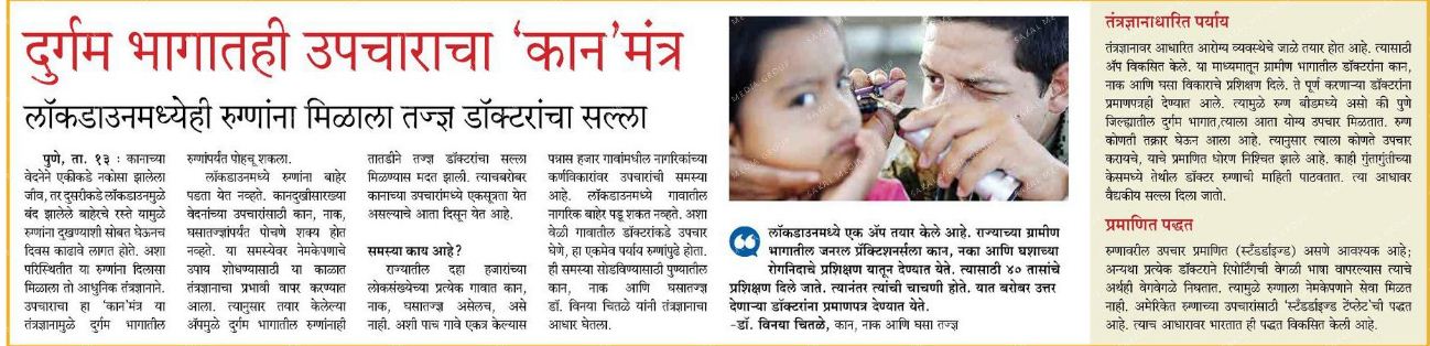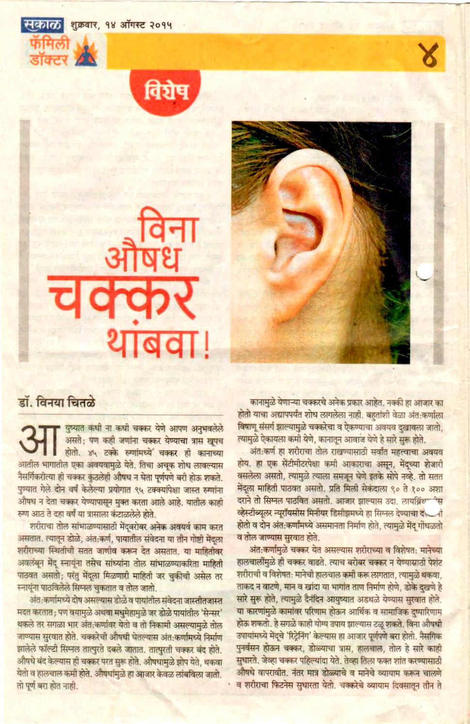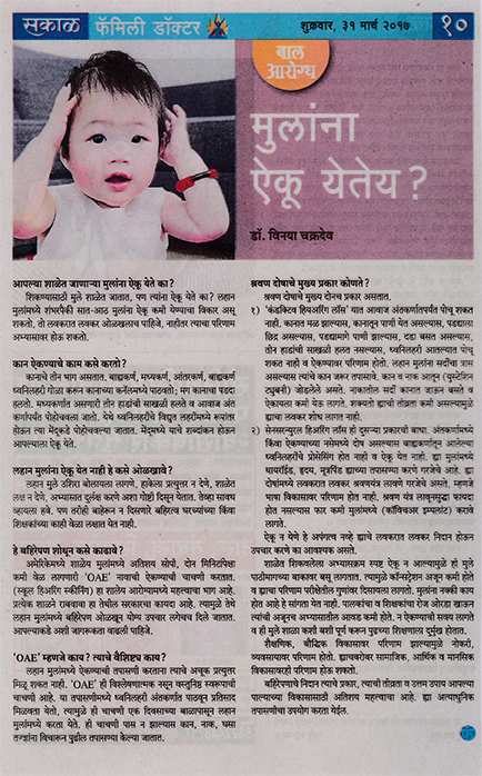 News article published in Family Doctor supplement of Sakal on 31 st March 2017 regarding awareness of hearing loss in school going children.